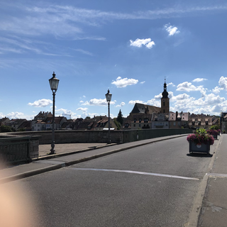 Je me régale une fois de plus . C’est là que Amber , cycliste hollandaise décide de s’arrêter aussi , et j’en ai plein la bouche quand elle vient vers moi . Elle sourit et on commence à discuter . De mère française , la communication est plus simple . On finit la route ensemble , Gratheinfeld puis jusqu’à Schwenfurt . C’est joli . Une petite glace sur la place au milieu des touristes .