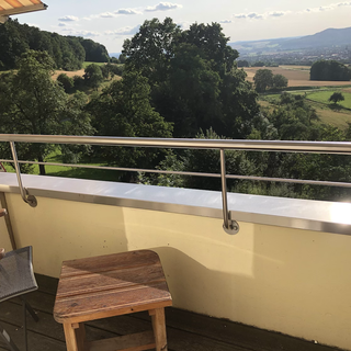 J’arrive enfin à Bad Steffenseld ..82 kms au compteur . J’ai pris un hébergement à 3kms , je me rejouis d’arriver . Trop vite . 3kms de cote , que je terminerai à pied évidemment. Mais ça valait le coup . La vie est magnifique , des hirondelles me tiennent compagnie sur le balcon , et le couché de soleil est splendide. Je suis bien , très bien même . Avec un morceau de pain et une boîte de sardines , que du bonheur . Comme dit la chanson , il en fait vraiment peu pour être heureux 🎵