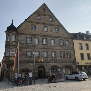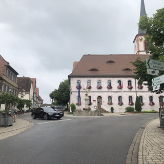 Voila Hassfurt . Envie d’un café . Devany l’église , la messe , en plein air. J’ecoute le discours en allemand , les chants . Je comprends rien mais c’est beau aux oreilles.