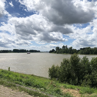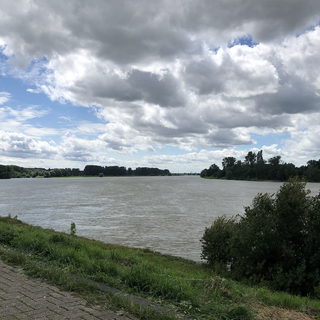 Forcément , quand on passe ses nuits à se gratter , on dort moins . Je suis un peu crevée ce matin et la pluie tombe encore . C’est prévu jusqu’à midi . Je me décide donc à traîner un peu , je vais à la gare de Düsseldorf changer nos billets de retour Prague Paris parce qu’un des trains est supprimé . Et j’attends que la pluie cesse . Je ne ferai que 25 kms aujourd’hui. Je suis le Rhin et je me pose pour déjeuner sur un banc , avec cette vue magnifique. Je n’irai pas beaucoup plus loin , je trouve une petite pension et je décide d’y rester .