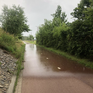 Bon . C’est pas tout ça mais le temps se gâte , se gâte même grave . Je me mets à l’abri sous un pont , me reste 10kms , mais je sens que ça va tomber . Bingo .